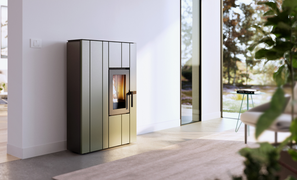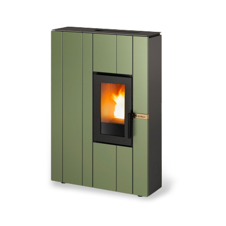 La estufa de pellets Line combina la calidez de la leña con un diseño moderno totalmente italiano. El elegante acabado exterior en acero, disponible en 3 colores, da a la estufa un aspecto elegante y refinado. El espesor extremadamente reducido permite la instalación incluso en espacios estrechos, minimizando el espacio y valorizando el ambiente.